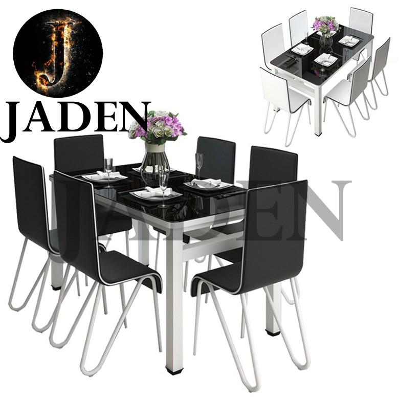 Amazon Com Dining Table With Chairs 4homart 5 Pcs Glass Dining Kitchen Table Set Modern Tempered Glass Top Table And Pu Leather Chairs With 4 Chairs Dining Room Furniture White Table from images-na.ssl-images-amazon.com Stainless steel dining room set home furniture minimalist modern glass dining table and 4 chairs mesa de jantar muebles comedor. Dining table tempered glass and 4 padded chair set faux leather metal legs black. It can be placed not only in the kitchen, but also in the dining room.
