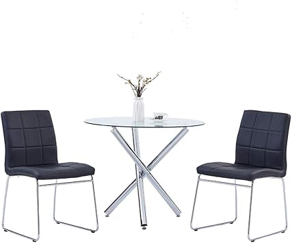 Get Glass Top Round Dining Table With Chairs Pics. 5 piece dining set consisting of round table with glass top and 4 upholstered chairs. The glass has double beveled edges.
